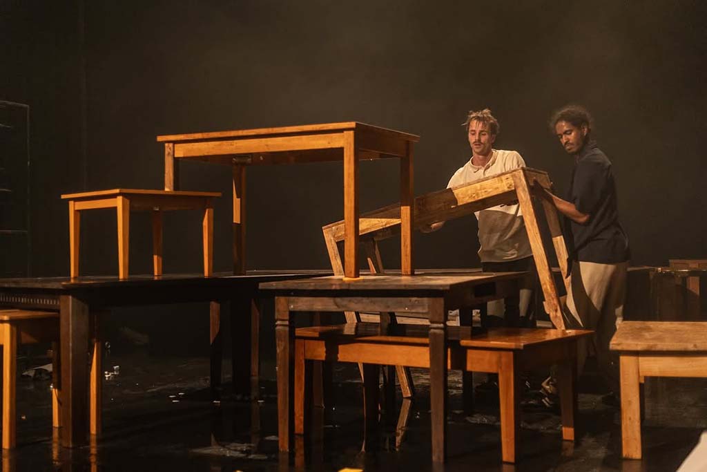 In HEAVEN, Collectief Het Paradijs examines, in their now-distinctive style, what humans are really looking for in heaven. The three performers fully immerse themselves in the most banal situations, where humor and tragedy seamlessly blend. An epic punk-mime performance you don’t want to miss.